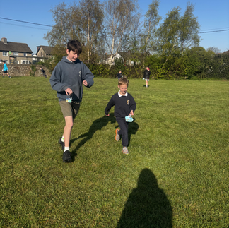 Senior Infants and 6th Class have been enjoying the sun together before we finish for the Easter holidays. We read the fantastic stories that 6th class had written in the garden and then finished the term in the sunshine with our egg hunt. Senior Infants made Easter baskets for themselves and their buddies and we had great fun looking for eggs and trying to get the two golden eggs.
